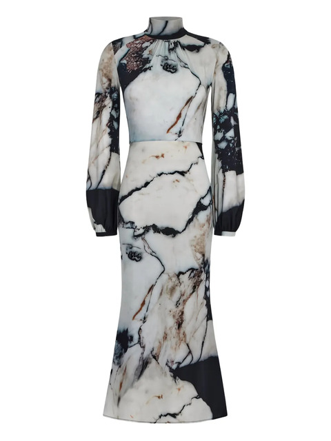 Roberto Cavalli marble-print high-neck midi dress - 25747655 (LPN305749)