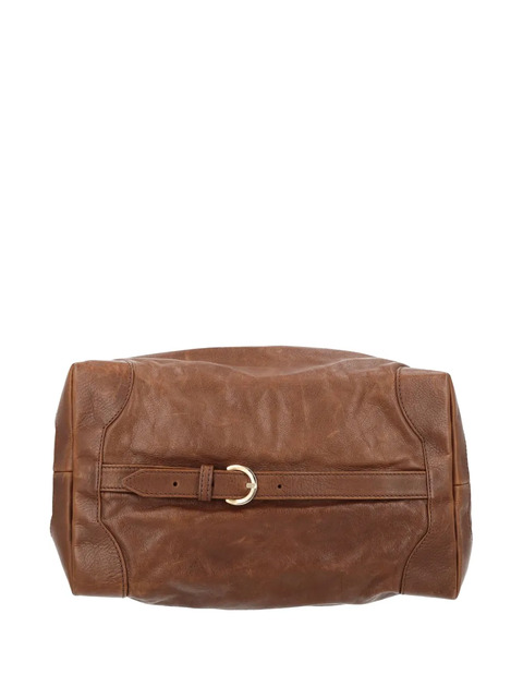 chocolate brown leather adjustable shoulder strap main compartment internal logo patch internal zip-fastening pocket contrast lining Condition: GOOD. This previously owned and used item is in good condition with minimal signs of use. This may include fading of material or plating and scratches.