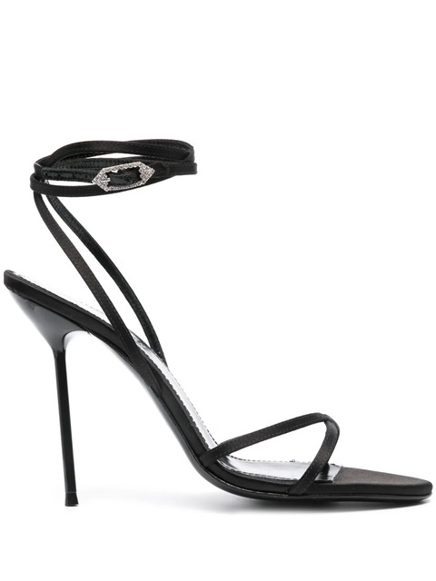Liz 105mm sandals black calf leather almond open toe crossover strap at the toe buckle-fastening ankle strap open back branded leather insole stiletto heel leather sole