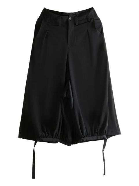 black pleated design balloon hem drawstring fastening button fly straight leg