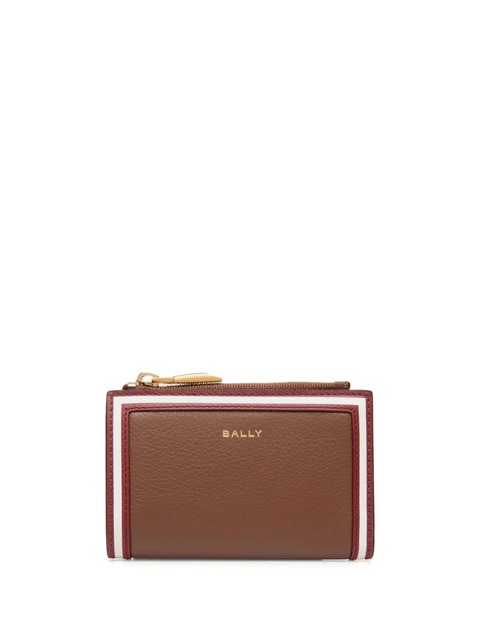 cognac brown press-stud fastening zip-fastening pocket internal card slots striped border