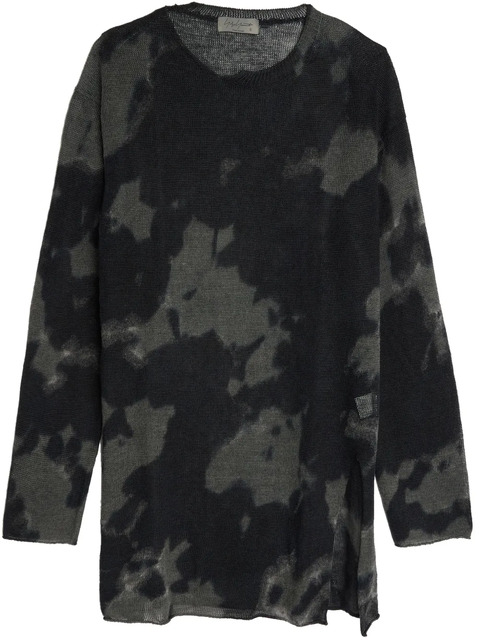 black crew neck long sleeves tie-dye pattern