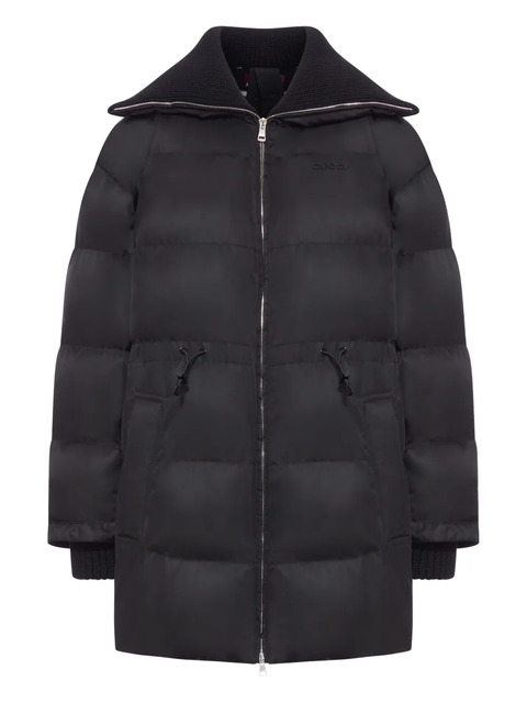 black quilted design ribbed collar zip fastening drawstring waistline long sleeves