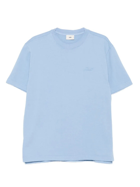 light blue cotton fabric short sleeves crew neck embroidered logo