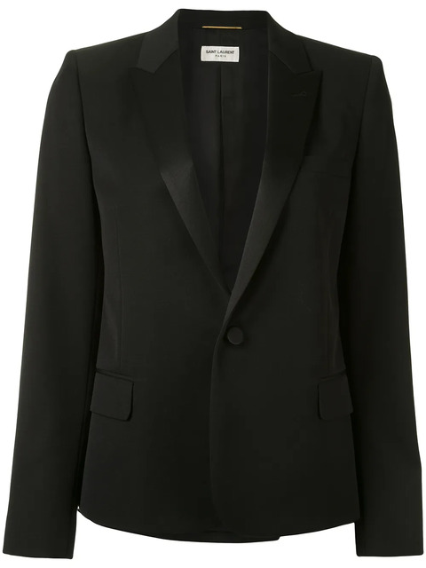 Going to a special event soon? Make sure you'll be at your best with this black single-breasted blazer from Saint Laurent. Designed with classic peaked lapels, this piece will always add a classy vibe! Featuring peaked lapels, a front button fastening, a chest pocket, flap pockets, long sleeves, button cuffs and a rear central vent.