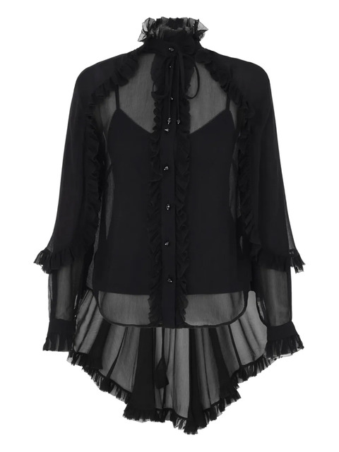 black front button fastening front tie fastening cape design ruffled trim