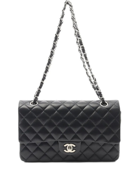 2015 black quilted lambskin leather chain strap signature double flap closure Serial Number: 21593587 This item comes with an original Chanel authenticity card. This item comes with an original authenticity seal. Condition: EXCELLENT. This previously owned item is in near-perfect condition with no signs of damage or use.