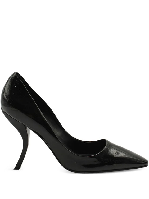 black patent leather point toe curved heel low-cut vamp