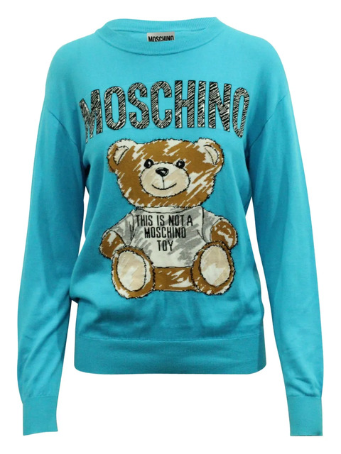 turquoise blue cotton signature Teddy Bear motif crew neck long sleeves
