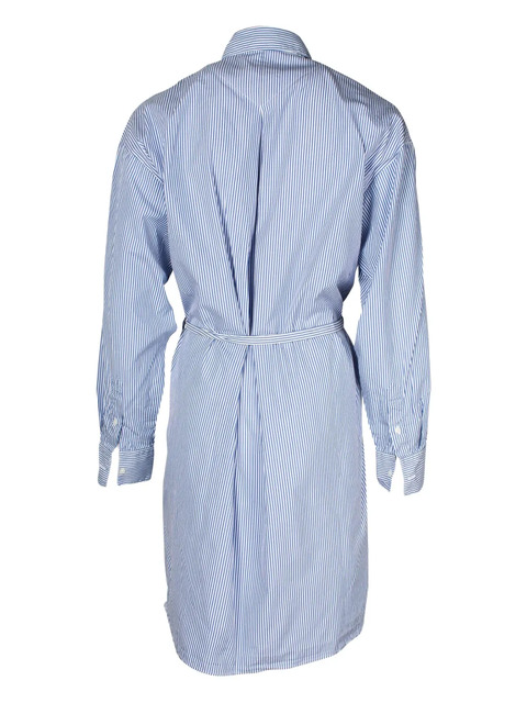 blue and white cotton striped pattern classic collar long sleeves belted waist