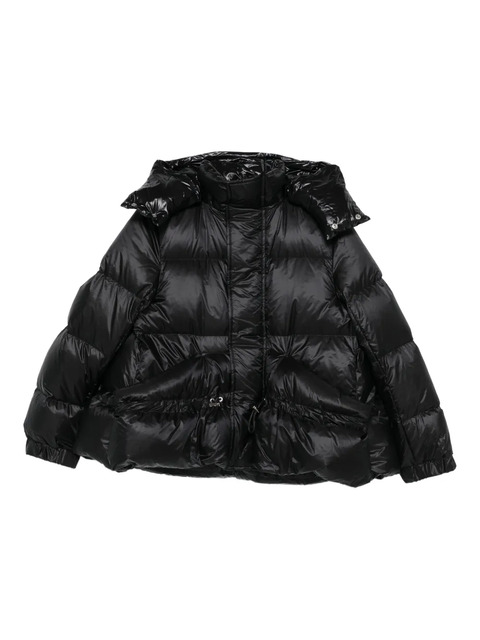 black quilted design hooded neckline drawstring hem long sleeves concealed zip fastening
