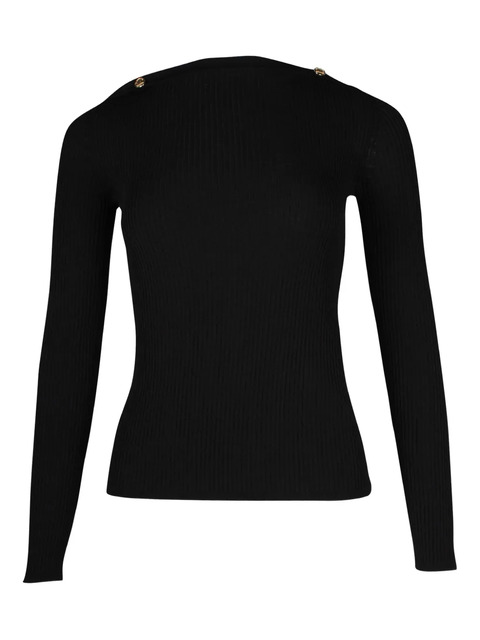 black ribbed knit boat neck long sleeves shoulder button embellishments Condition: UNWORN, WITH TAGS. This piece is previously owned but remains unworn and in its original condition. Comes complete with its original tags attached.
