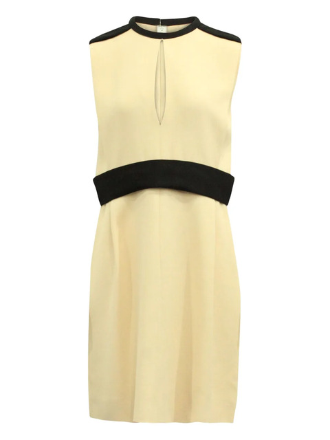 beige keyhole neckline sleeveless waistband panelled two-toned design