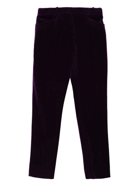 plum purple concealed front button, hook and zip fastening two side inset pockets two rear jetted pockets