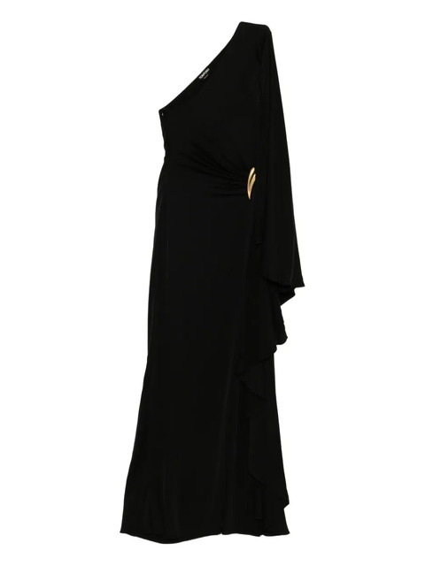black side zip fastening twist detailing asymmetric neck asymmetric sleeves
