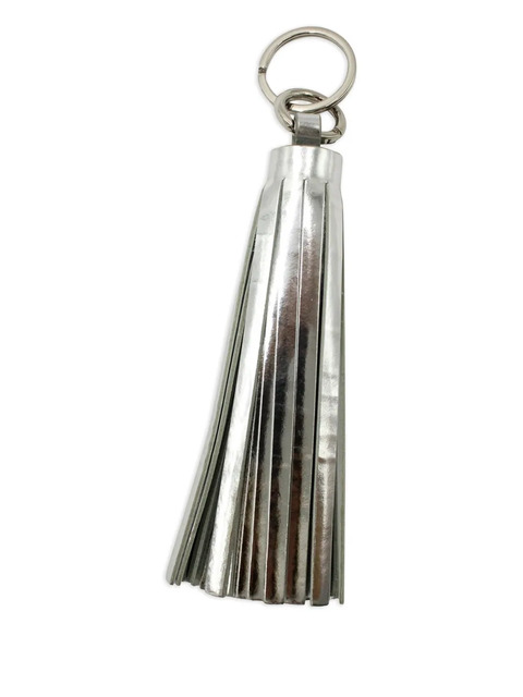silver-tone leather tassel detailing key ring engraved logo