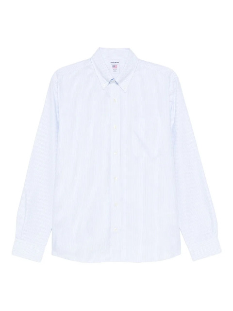 light blue vertical stripes front button fastening classic collar long sleeves chest patch pocket
