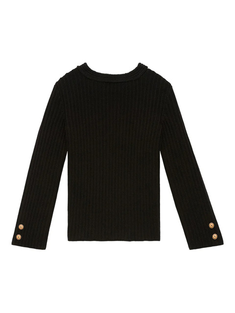 black ribbed knit three-quarter sleeves button cuffs round neck wool
