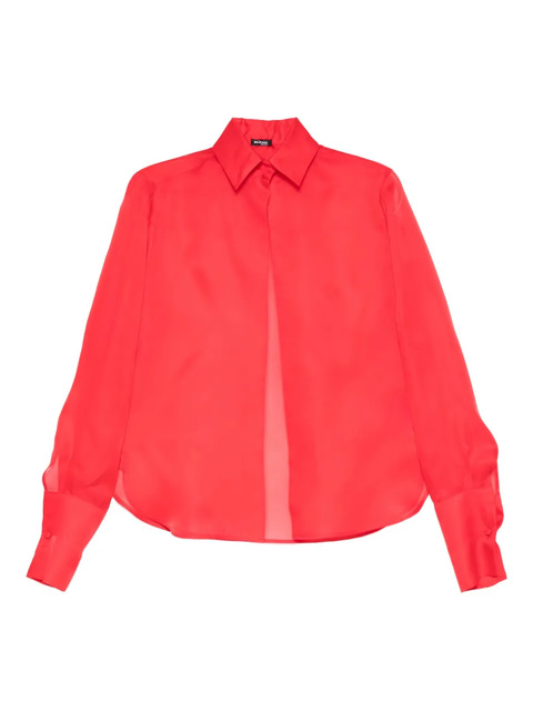 red sheer central back panel long sleeves button fastening subtle top stitching