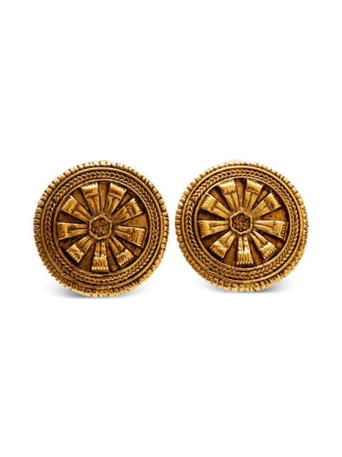 circa 1980-1990s gold-tone circular shape floral motif clip-on fastening detailed border Condition: GOOD. This previously owned and used item is in good condition with minimal signs of use. This may include fading of material or plating and scratches. These earrings come as a pair.