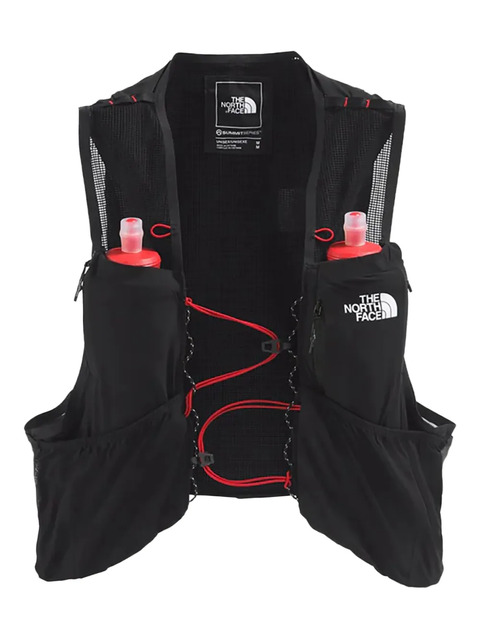 black north face logo sleeveless design adjustable straps hydration bottle pockets rear storage pocket