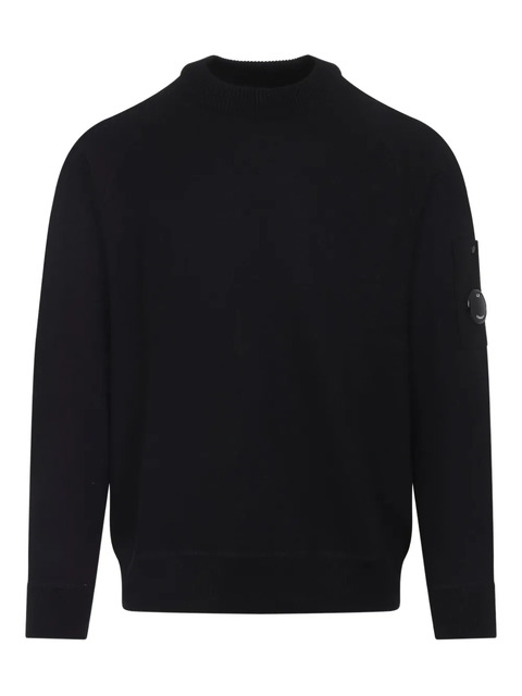 black wool-blend raglan sleeves crew neck lens pocket ribbed hem C.P. Company suggests removing any detachable accessories before washing.