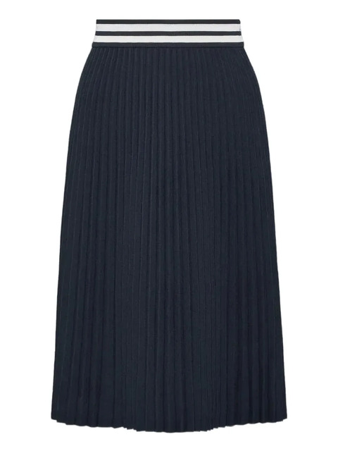 navy blue pleated design cashmere-silk blend ribbed waistband stripe detail