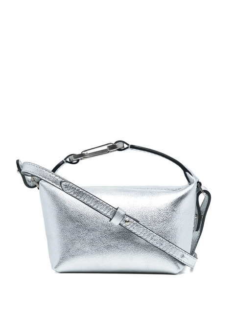 Tiny Moon shoulder bag from EERA featuring silver, leather, grained texture, metallic effect, top zip fastening, single shoulder strap, single rounded top handle and main compartment.