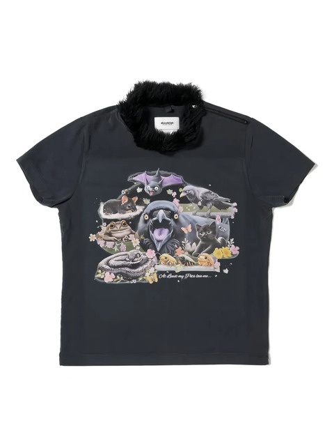 Doublet furry-collar graphic-print T-shirt - 31991283 (LPN326724)