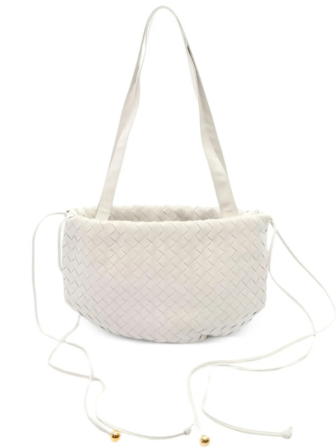 white signature Intrecciato design two shoulder straps drawstring fastening main compartment