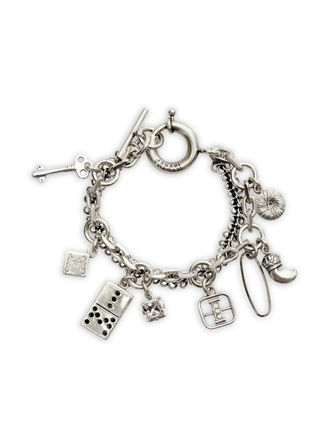 silver toggle fastening multiple charms chain detail domino charm key charm