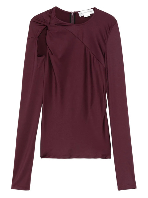 burgundy twist detail cut-out shoulder long sleeves round neck