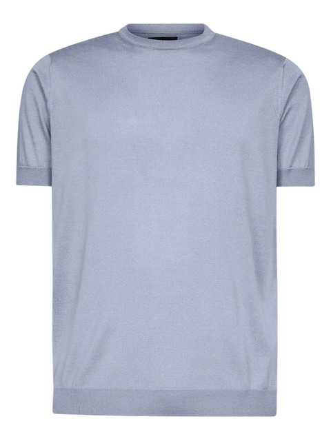 light blue ribbed crewneck short sleeves ribbed cuffs ribbed hemline silk cotton