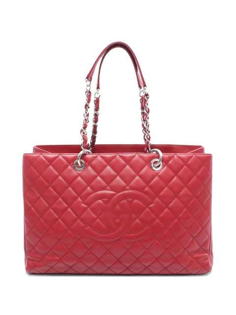 red diamond quilted pattern chain-link and leather top handles top zip fastening caviar leather