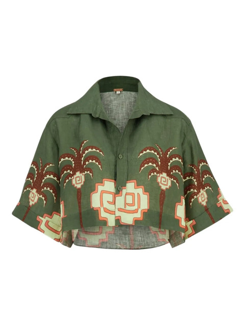 Johanna Ortiz palm-tree print linen shirt - 30573931 (LPN327387)