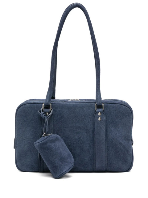 blue suede two-way zip fastening top handles detachable pouch silver-tone hardware