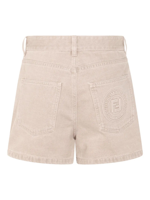 toffee beige embroidered logo five-pocket design button fly high waist straight hem