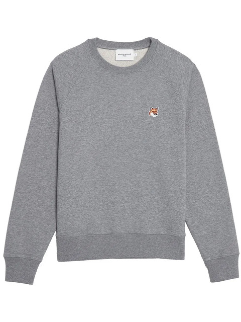 grey cotton mélange effect signature fox motif crew neck long raglan sleeves straight hem