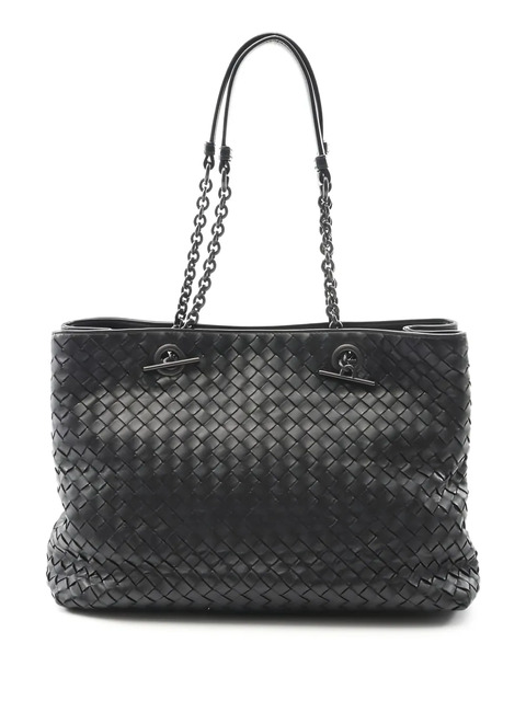 00s black Intrecciato leather weave chain shoulder straps internal zip compartment clasp closure