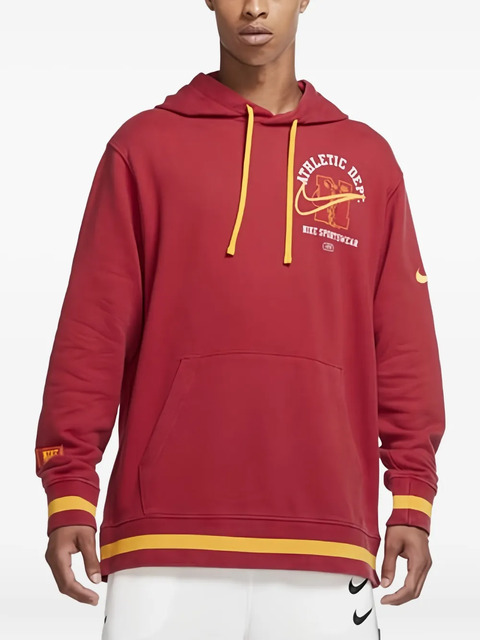 red graphic print to the rear drawstring hood front pouch pocket long sleeves