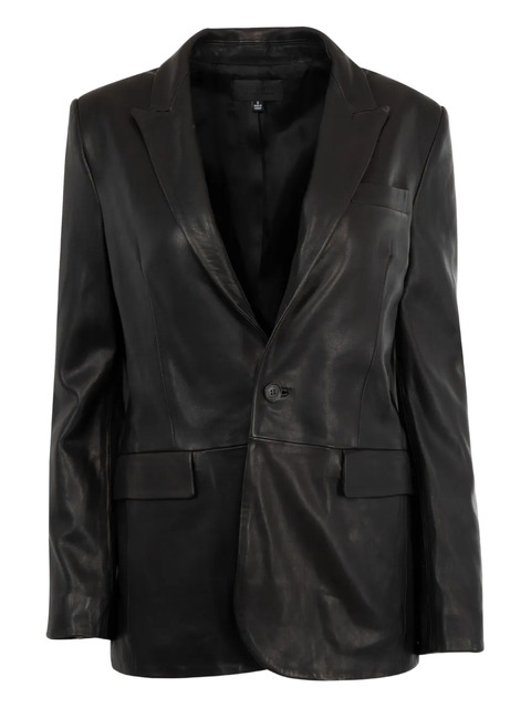 black leather single-button fastening notched lapel welt pockets long sleeves