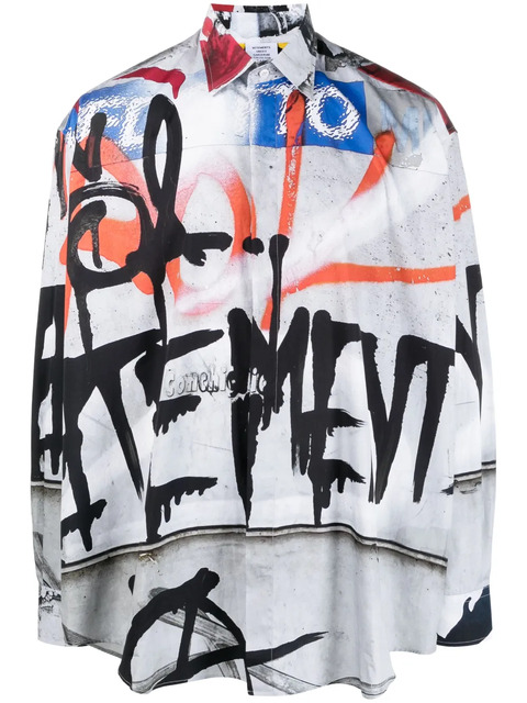 VETEMENTS graffiti-print long-sleeve cotton shirt - 21284692 (LPN328892)
