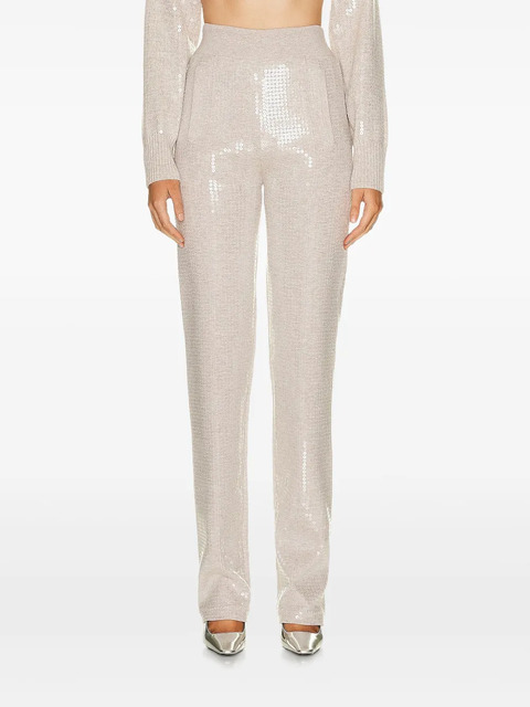beige sequin embellishment high waist straight leg side pockets