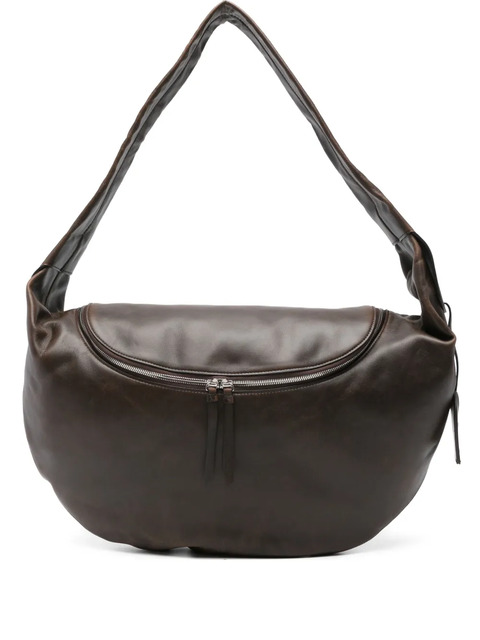 brown leather two-way zip fastening curved silhouette single shoulder strap
