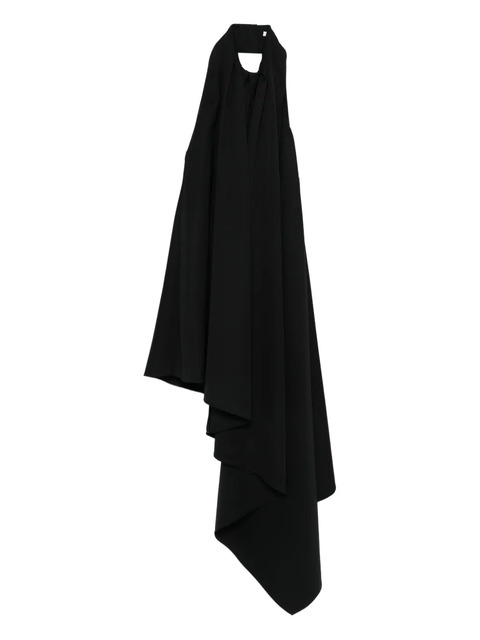 black wool halterneck asymmetrical hem draped detail sleeveless