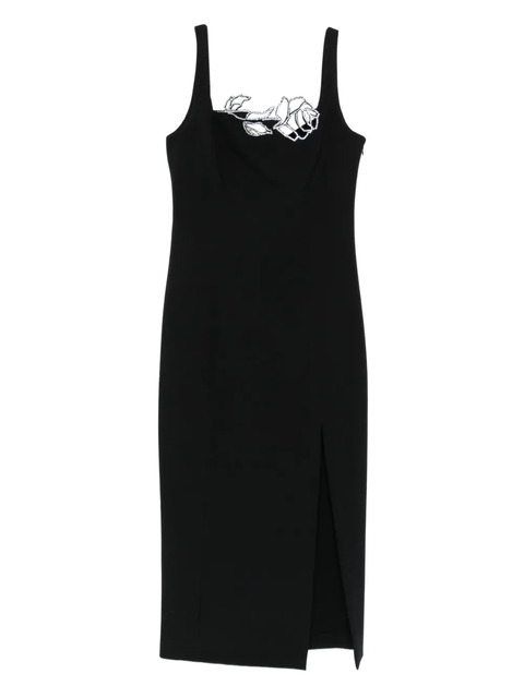 black rose embellishment square neck sleeveless side split midi length