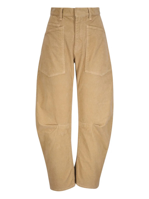 beige corduroy texture patch pockets button fly straight leg mid waist