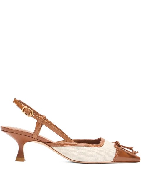 camel brown buckle-fastening slingback strap bow detailing leather trim 50mm stiletto heel