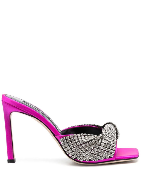 fuchsia pink calf leather branded leather insole crystal embellishment open toe slip-on style 95mm heel