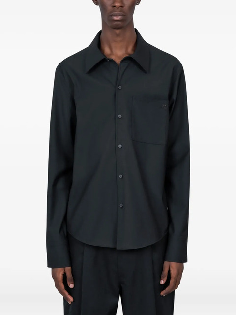 black long sleeve button fastening single chest-pocket curved hem logo detail
